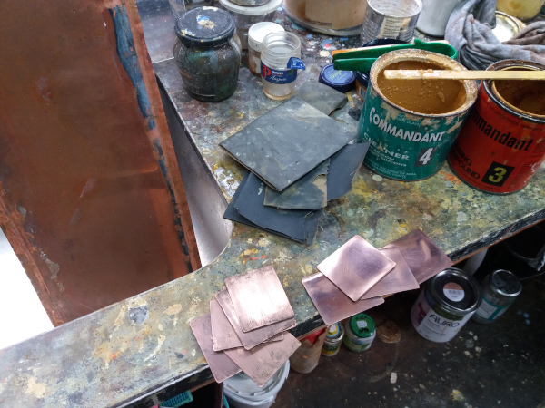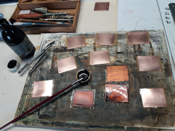 Op een zorgvuldig gepolijste plaat van koper of zink..........