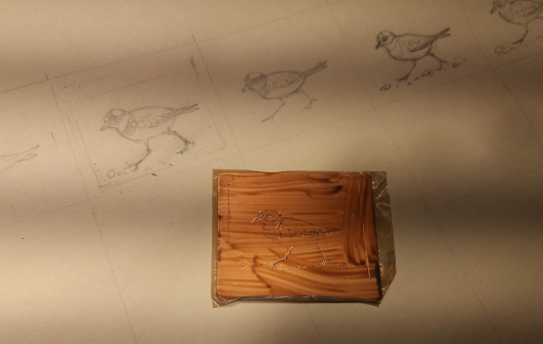 In deze laag wordt in spiegelbeeld met een etsnaald een afbeelding getekend.